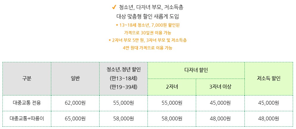 - 기후동행카드: 65,000원 (청년은 58,000원)
